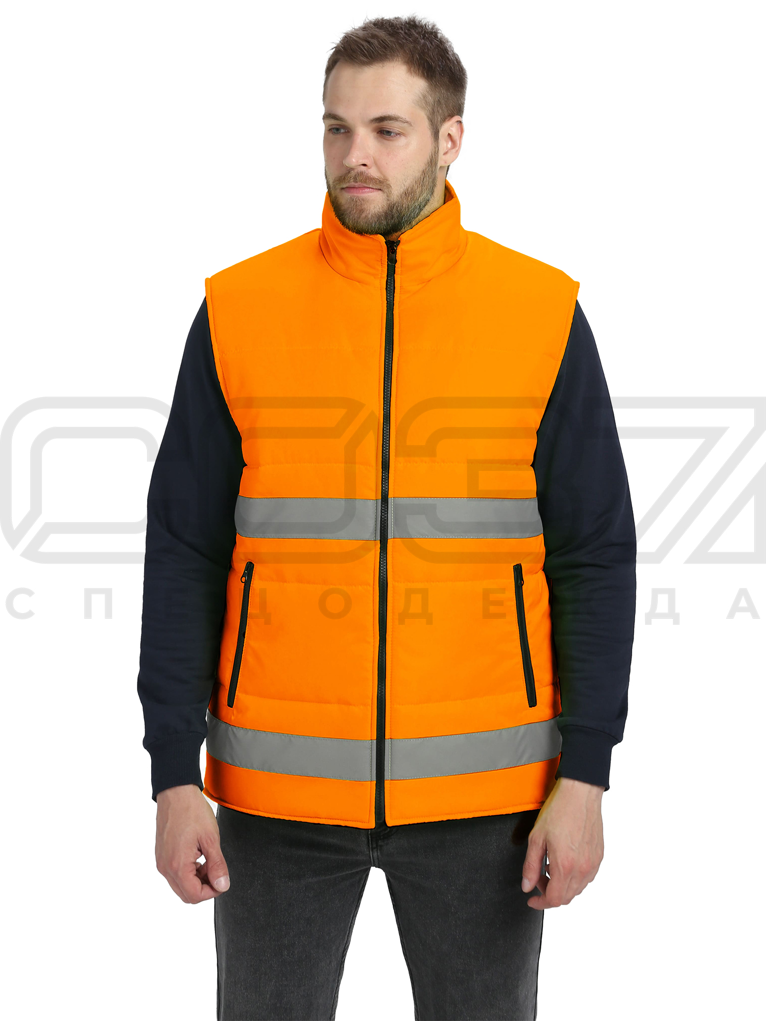 Жилет сигнальный утеплённый "Квазар" с СОП цв.оранжевый тк.оксфорд в Севастополе