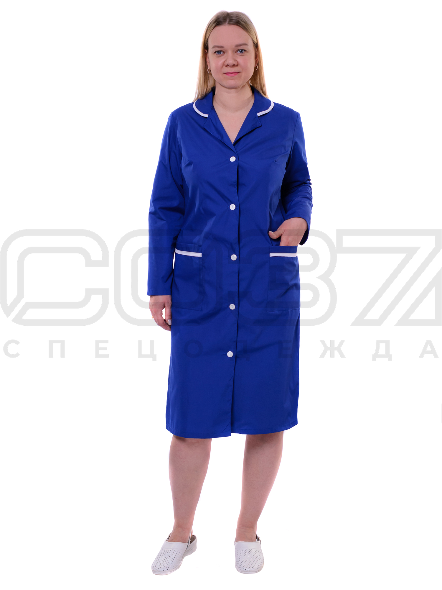 Халат рабочий женский цв.василёк/белый кант тк.тиси в Севастополе