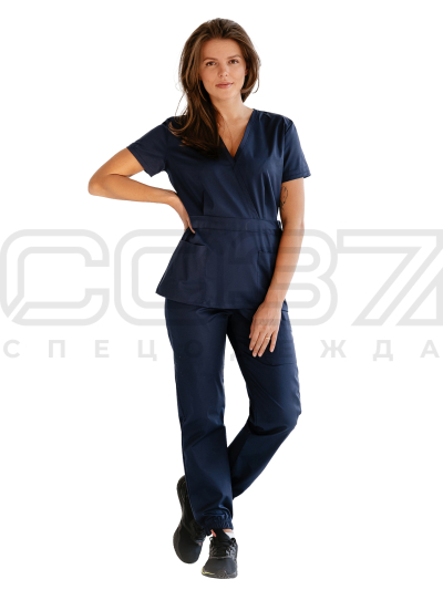 Костюм санитарный женский АР407 цв.тёмно-синий тк.хлопок/спандекс в Севастополе