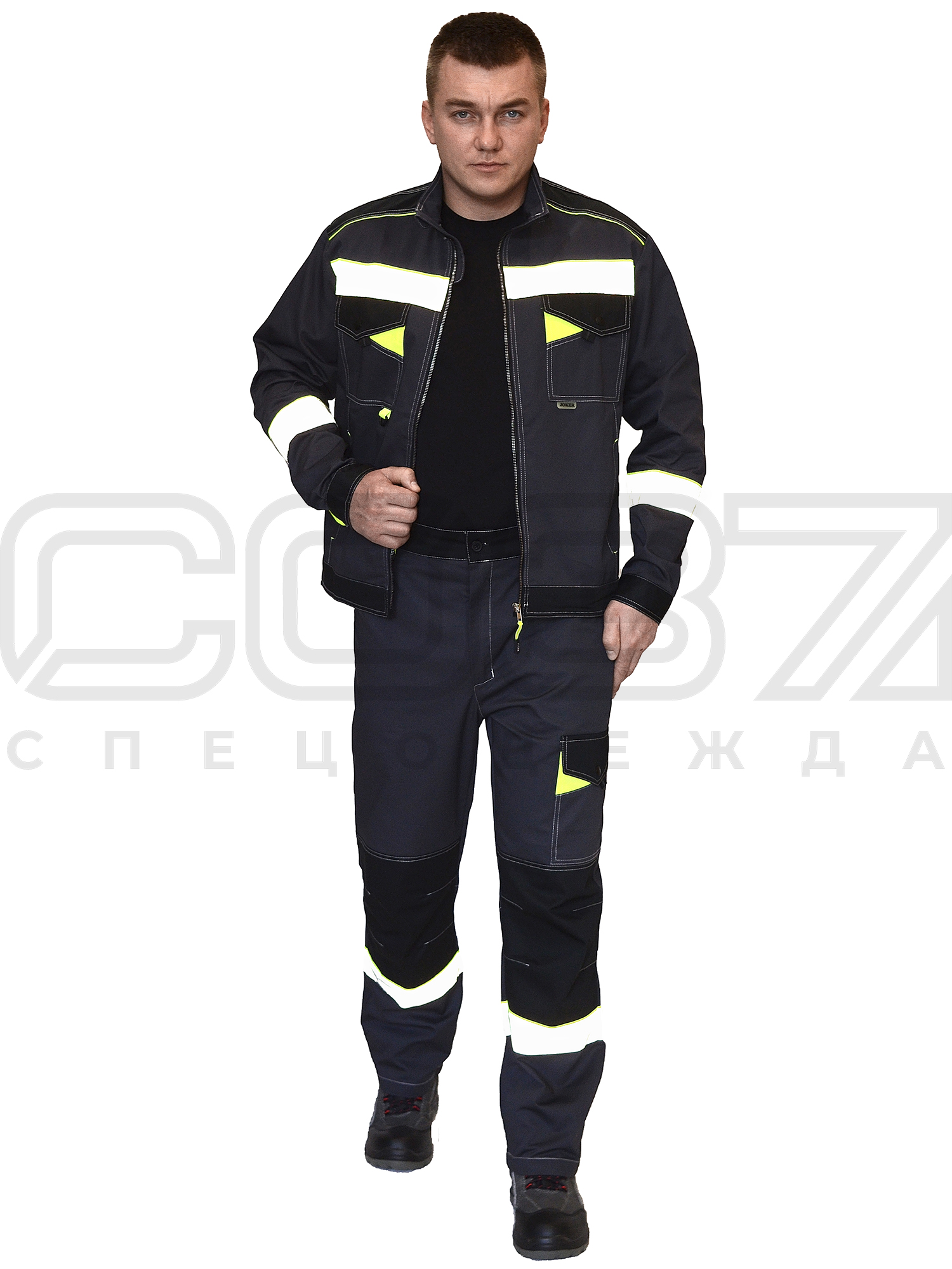 Костюм рабочий "Фрегат Коттон" с СОП цв.т.серый/чёрный/лимон тк.смесовая с МВО (куртка+брюки) в Севастополе
