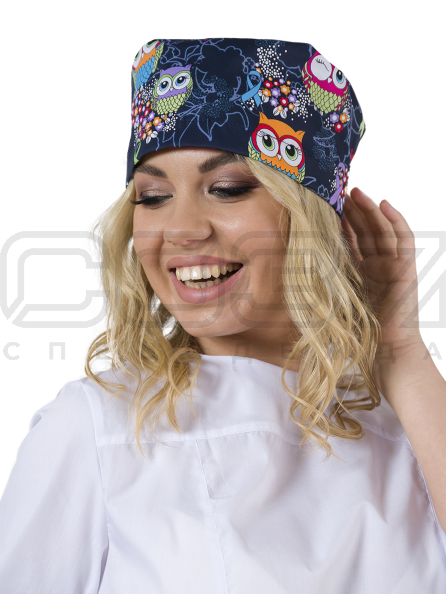 Колпак медицинский на резинке ИМ603(N6-Y2) цв.тёмно-синий/рисунок совы тк.стрейч в Севастополе