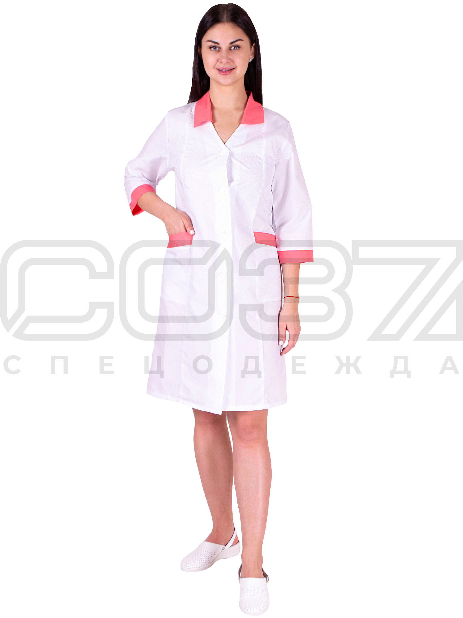 Халат медицинский женский "Аспирант" цв.белый/коралл тк.тиси в Севастополе