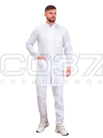 Халат медицинский мужской ИМ072 цв.белый тк.тиси в Севастополе