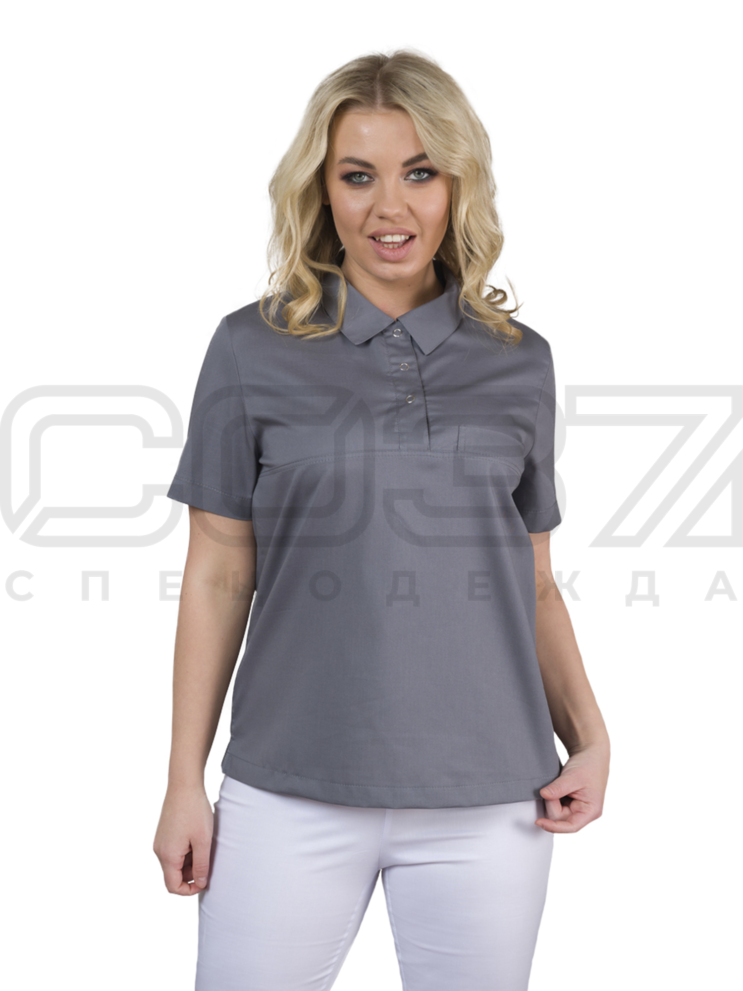 Блузка-поло медицинская женская ИМ283(73) цв.графит тк.элит/стрейч в Севастополе