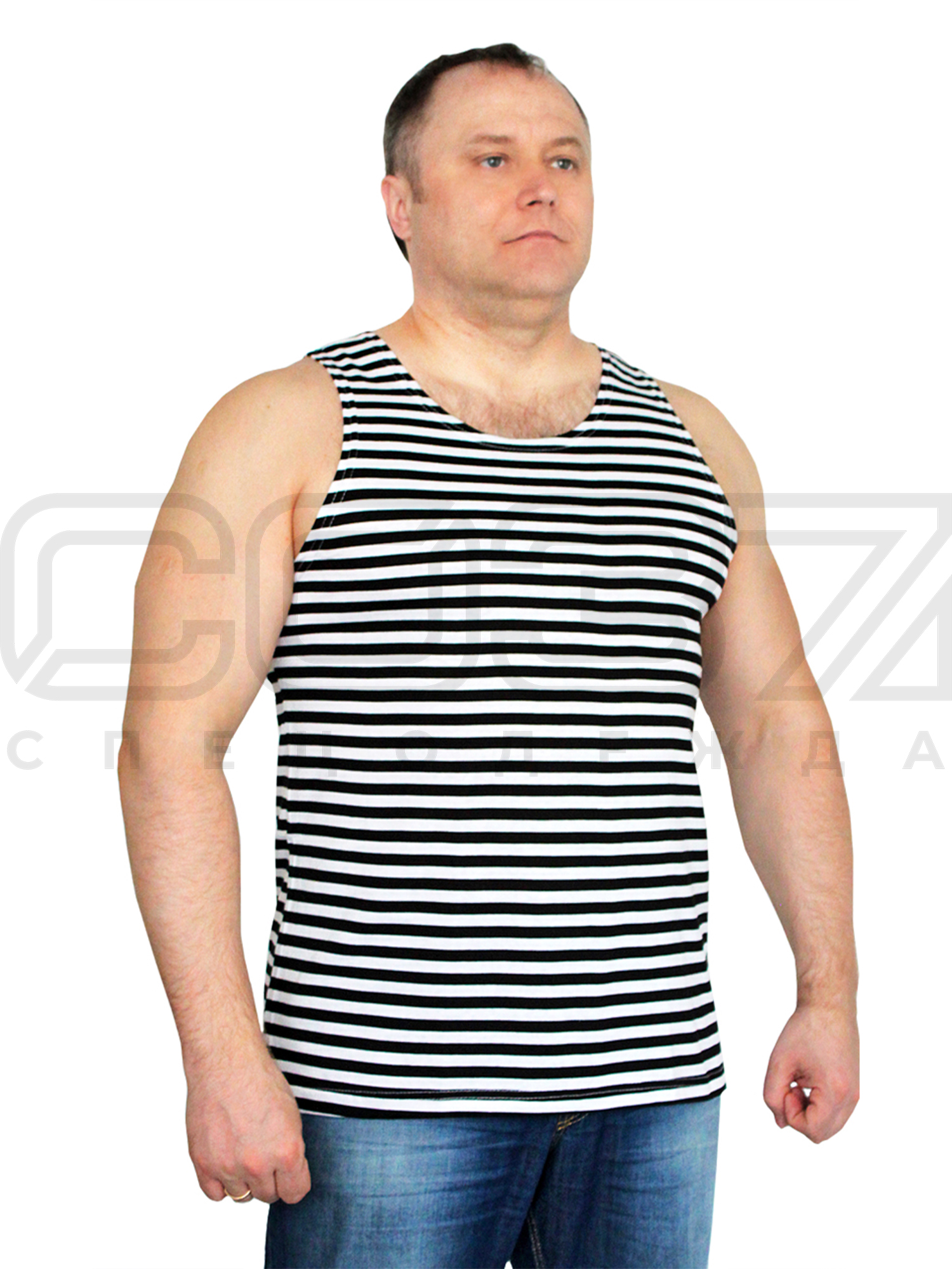Майка-тельняшка с узким плечом, чёрная полоса.