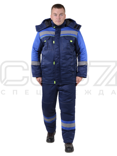 Костюм рабочий зимний "Барей" с СОП цв.т.синий/василёк/неон тк.смесовая (куртка+пк) IV и Особый кл.п в Севастополе