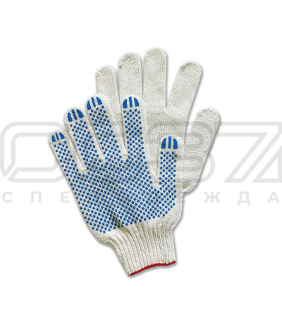 Перчатки трикотажные 5 нитей, 7,5 класс вязки, х/б ПВХ - точка.